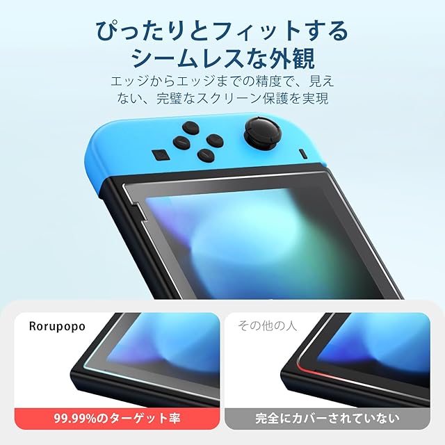 商品名:2枚入り Rorupopo Switch 用 保護 ガラスフィルム スイッチ 強靭9H 3Dラウンドエッジ加工 撥水撥油 気泡防止 指紋防止 飛散防止 極薄 ピタ貼り 貼付道具付 自己吸着 9H[ガイド枠付き] [並行輸入品]