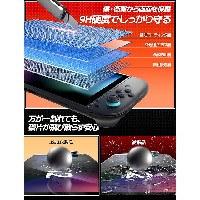 商品名:JSAUX 対応 Switch 2 / スイッチ2 保護フィルム 【2枚セット】簡単ガイド枠付き強化ガラスフィルム | 高透過率・全画面保護・超耐久9H硬度・気泡ゼロ・指紋防止・タッチ感度・超薄型・飛散防止・ドック対応