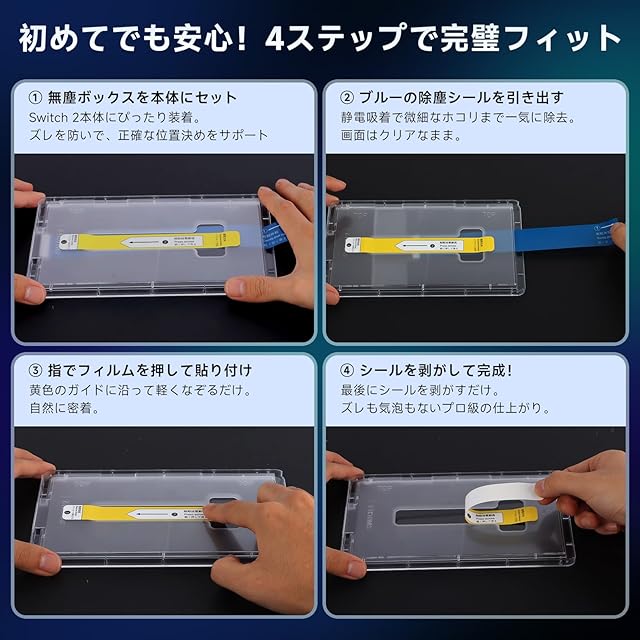 【誰でも簡単の貼り付け】初心者でも安心の貼り付け補助キット付き。専用の無塵貼り付けトレイを使用することで、フィルムが自動的に適切な位置へ吸着。ズレや気泡、ホコリの混入を最小限に抑え、プロ並みの仕上がりを実現します。初めての方でもわずか30秒で綺麗に装着できます。