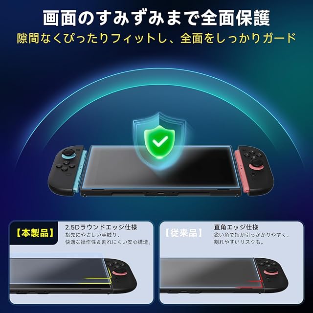 【Switch 2対応・フルカバー設計】本製品はSwitch 2 専用に精密設計されており、本体の液晶画面にぴったりとフィット。2.5Dラウンドエッジ加工により自然な一体感があり、端までしっかり保護します。ドック使用時にも干渉しないため、装着したまま収納可能。本体に傷や汚れをつけたくない方にぴったりなアイテムです。