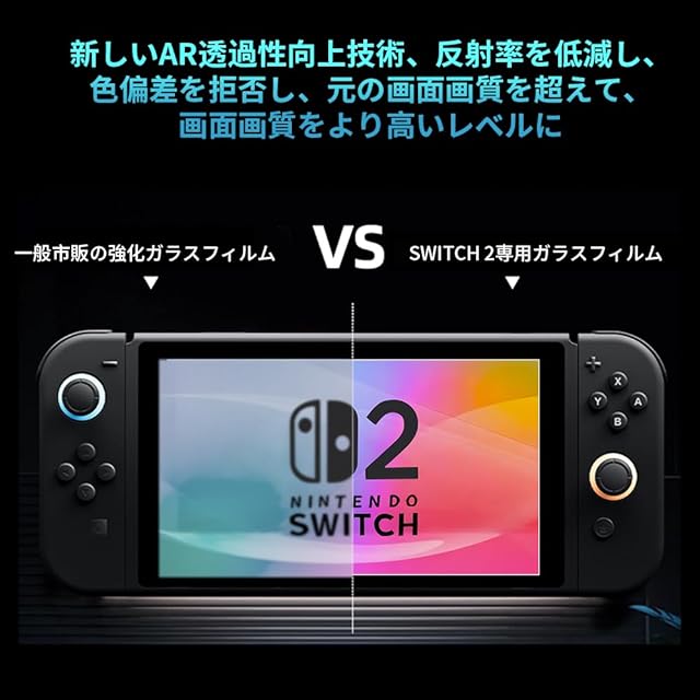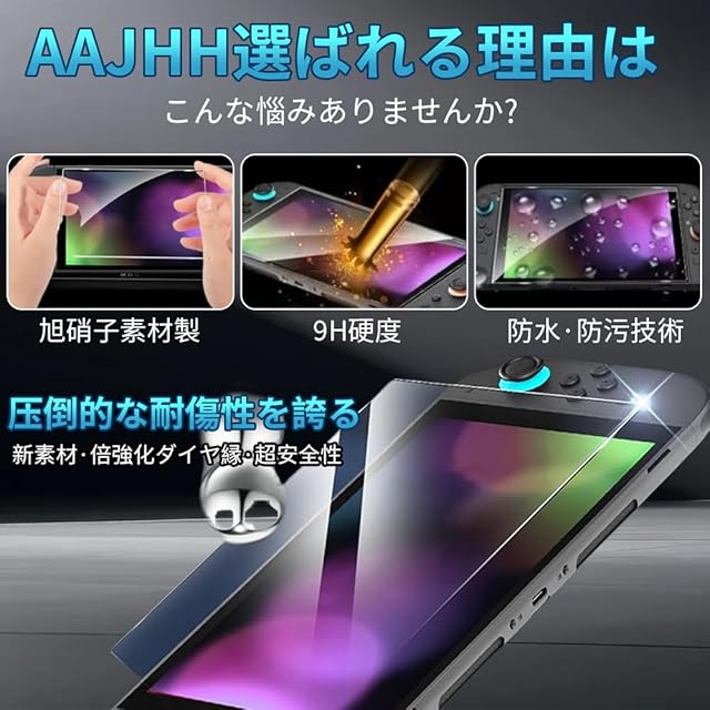 商品名:AAJHH 対応 Switch 2 保護フィルム|全面保護 強化ガラス【1枚入り】Switch 2 ガラスフィルム|一発貼り・自動貼り付けキット付き |対応 switch2 ガラスフィルム・高硬度9H・指紋防止・耐衝撃・高透過率・撥油性・超耐久・高光沢・飛散防止・気泡ゼロ