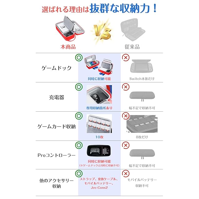 【超大収納&コンパクト設計】Switch本体+ゲームカード10枚収納可能なメッシュポケット付き!Joy-Conストラップや充電器などの周辺機器もまとめて収納。無駄のないスリム設計で持ち運びに最適です。