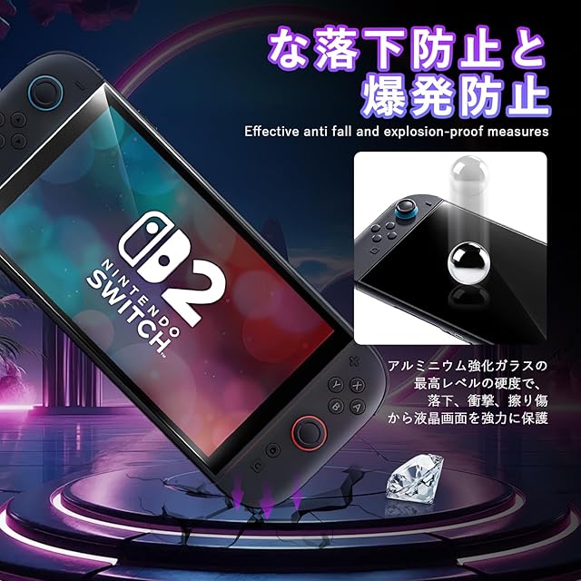 商品名:Nintendo Switch 2用強化ガラススクリーンプロテクター 強化ガラス 対応 スイッチ2 保護フィルム 一発貼り 自動貼り付けキット付き |対応 switch2 ガラスフィルム 指紋防止 高透過率 高光沢