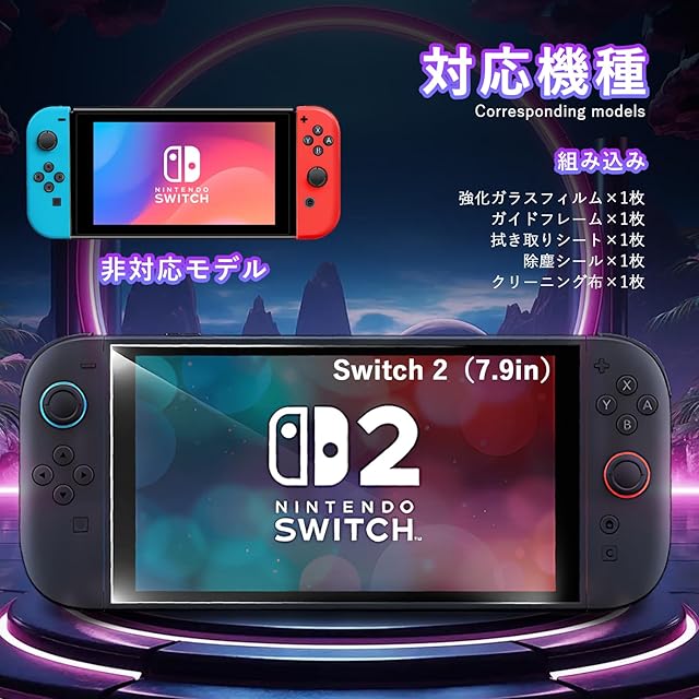 簡単な貼り付け:専用の貼り付けツールが付属しており、誰でも簡単かつ正確に貼ることができます。また、Switch 2(7.9 インチ)に最適にフィットします。