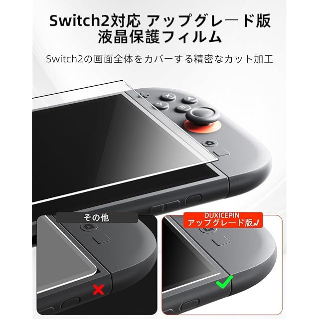 【対応機種】Switch 2 専用のデザインしております丶。透過率99.9%のクリアなガラスで、画面本来の美しさをそのまま再現。指紋認証やスワイプもスムーズに反応し、快適な操作性を実現。万が一の破損や不備には、12時間以内に迅速対応。交換・返金も無料で、安心してご購入いただけます。