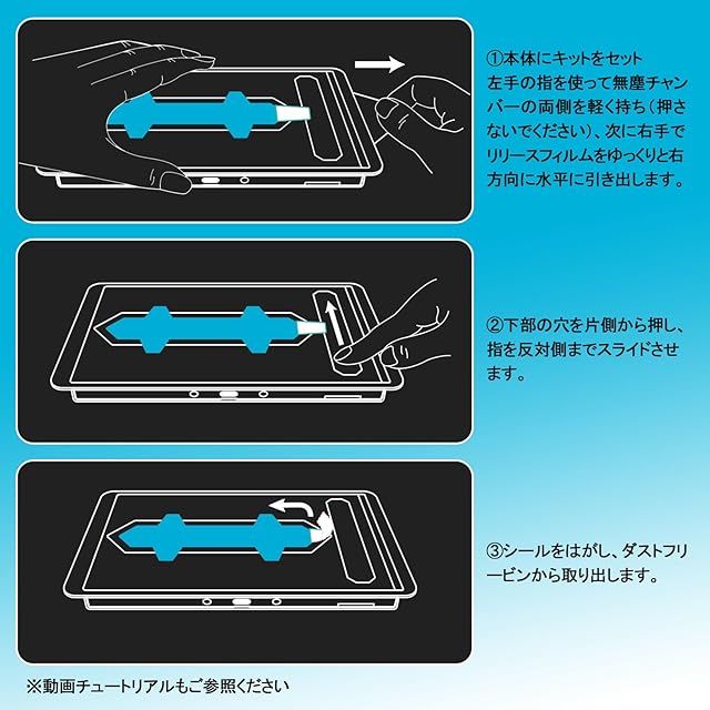 【位置合わせ不要・まっすぐ貼れる】 貼り付けに特化した専用設計ガイド、フィルムが自動で正しい位置に。ズレずに一発で貼れます。 ※ ガイドユニットは軽く置いてご使用ください。強く押すとテープが破損する恐れがあります。 万が一使用中にご不明な点がございましたら、いつでもお気軽にお問い合わせください。