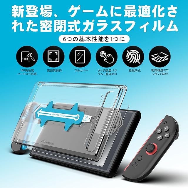 商品名:Nysera Switch 2 保護フィルム|強化ガラスタイプ・【1枚入り】・Switch 2 対応|自動貼り付けキット付き・貼り付け簡単・ズレ防止|10Hガラス・高透過率・指紋防止
