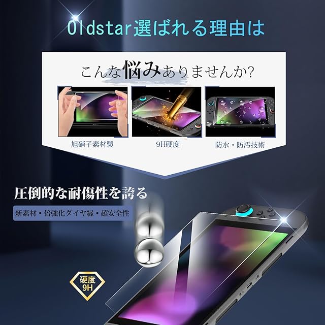 商品名:[Switch 2 モデル対応] Oldstar Switch 2 用 ガラスフィルム 2枚入り 画面 保護フィルム 2025強化ガラス 高硬度9H 日本硝子素材 指紋防止 耐衝撃 飛散防止 2.5Dラウンドエッジ加工 気泡ゼロ 自動吸着