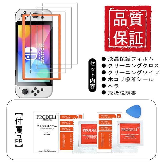 商品名:PRODELI For Switch 2(2025発売)専用 ガラスフィルム ガイド枠付き 高透過率 硬度9H 耐衝撃 高感度 2.5Dラウンドエッジ 気泡無し 強化ガラス 自動吸着 スイッチ2 用 保護フィルム【3枚入り】