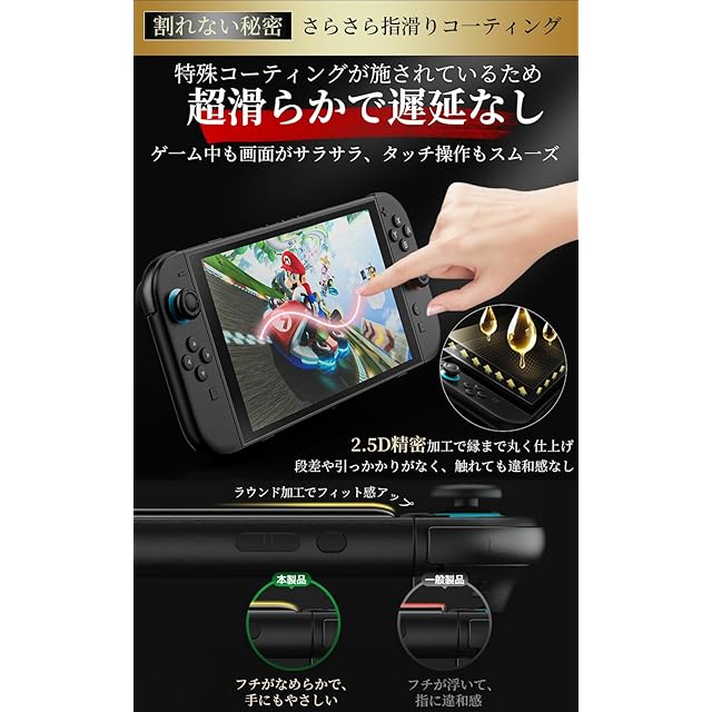【指紋防止&防水&耐油性の効果非常によい】当社のswitch2保護フィルムで、通常のフィルムのようなラフなタッチは一切ありません。更に超指紋防止、汗防止、スムーズにゲームプレイ体験、長時間の楽しみなどの利点もあります。10,000回以上に摩擦しても、指紋が残らなく、表面に滑らかで 防水性に優れ、油防止に優れて 、 水滴はボール形のままに保持します。(付着した指紋、水滴、汗、化粧品などは簡単に拭き取れます)