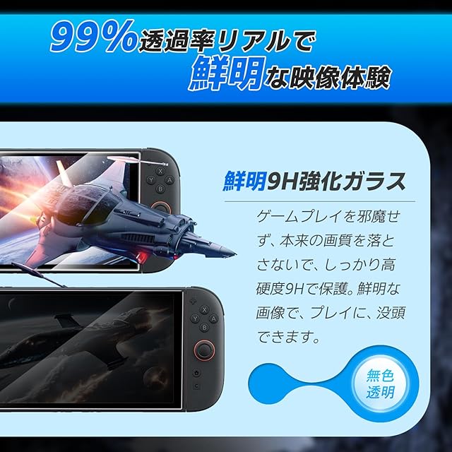 【保護フィルム】9H硬度強化ガラスは、スクラッチ、ダスト、バンプ、または高い降下のためのSwitch2保護を可能にします。画面の色と自然な視聴体験を強化します。