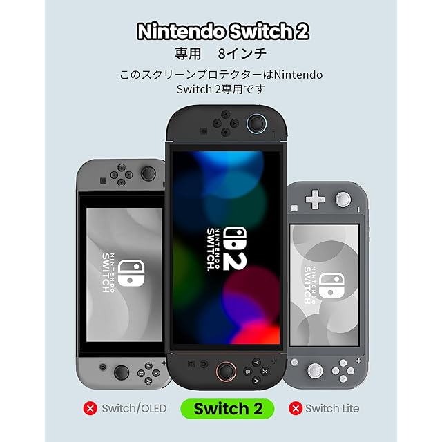 【Switch2対応フルカバー設計】対応Switch2のスクリーンに完全対応したフルカバー設計。端から端までの保護を実現し、Switch/Switch OLED/Switch Liteには非対応です。視界を広くカバーし、ゲーム体験をより快適にします。