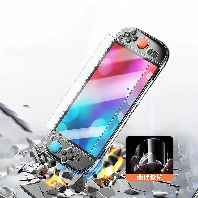 【9H硬度強化ガラス&分体式TPU保護ケース】最大9Hの硬度を持つ高透過率強化ガラスが付属し、傷や衝撃から画面を効果的に保護します。指紋防止コーティングにより、タッチ操作に影響を与えることなく画面をクリアに保ちます。柔軟なTPU保護カバーは、Switch 2を衝撃や摩耗から保護します。透明なデザインは、コンソールを保護しながら美観を維持し、デバイスのデザインを向上させ、傷を防ぎます。 分体式設計はコントローラーの取り外しや取り付けを妨げません。コントローラー用ゴムカバー も付属しており、万が一の落下時にも保護とクッション性を提供します。