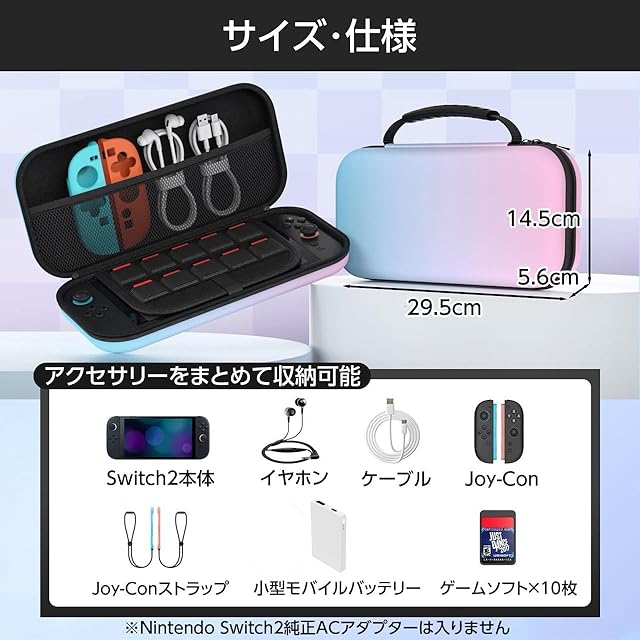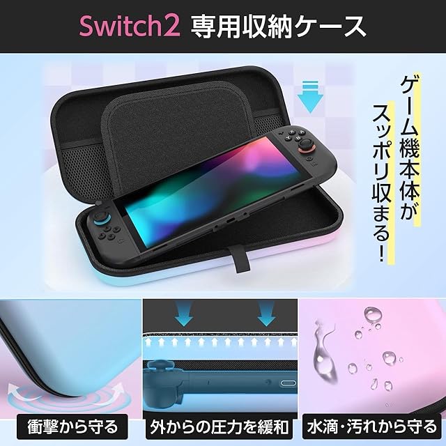 商品名:Jecca Switch2対応 ケース Nintendo スイッチ2 スリム 全面保護 キャリングケース ハードケース 耐衝撃 ポーチ ソフト10枚収納 (ピンク&ブルー)