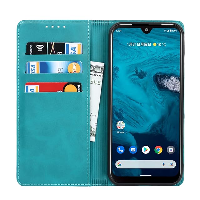 商品名:【Hamany】 京セラ Android One S4 ケース かんたんスマホ 手帳型 アンドロイドワンS4 収納 耐衝撃 耐久性 耐摩擦 マグネット式 レザー カバー -ファッション スカイブルー