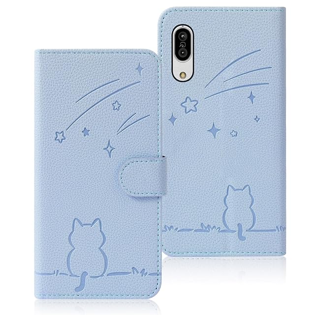 Rosbtib AQUOS sense3 ケース 手帳型 SH-02M ケース 流れ星子猫 aquos sense3 lite/sense3 basic/Android One S7 ケース 可愛い 猫柄 アクオスセンス3 ケース 耐衝撃 SHV45 SH-M12 SHV48 ケース オシャレ 軽量 耐久性 スタンド機能 カード収納 sense3 スマホケース マグネット 落下防止(ブルー)
