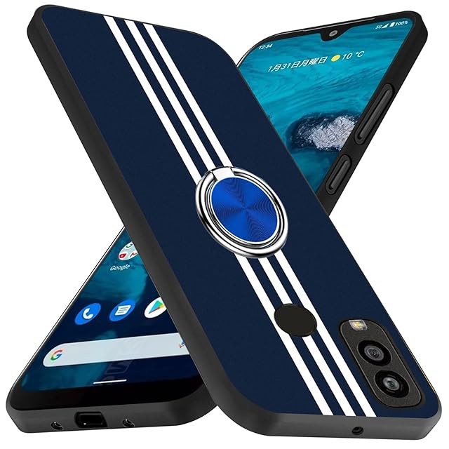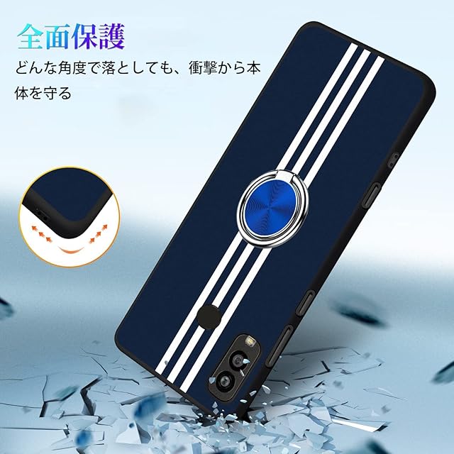 商品名:Android One S10 ケース Android One S9 ケース リング 耐衝撃 京セラ Android One S10 / S9 カバー TPU 指紋防止 シリコン 車載ホルダー対応 360°回転 ストラップホール付き 滑り止め 落下防止 全面保護カバー(ブルー)