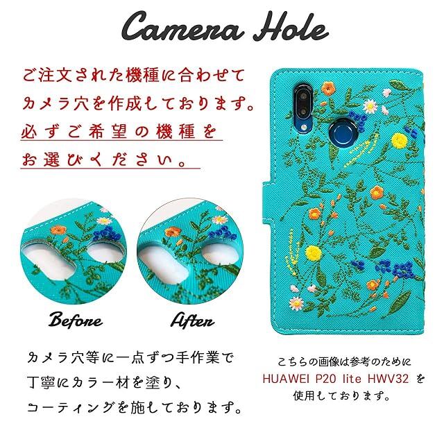 厚みのあるレザーにオリジナルで人気のボタニカル柄の刺繍を施した、大人の雰囲気の可愛い手帳ケースです。手帳を開きますと、カードポケット部分にワンポイントで一凛の花を刺繍しております。内側にスマホをはめる機種専用のケースを張り付けており、がっちりとホールドいたします。手帳のマチ部分の上下部にストラップホールを施しておりますので、チェーンで繋いで可愛くオシャレにアレンジ可能となります。機種専用のカメラやフラッシュ、指紋認証部分に穴をあけております。穴をあけた個所は特殊な液体で色を塗り、自然な形に加工しております。手帳のハンド部分にマグネットを内蔵しており、勝手に開くことを防ぎます。カラーバリエーションは8色となりますので、お好きな色をお選びいただけます。