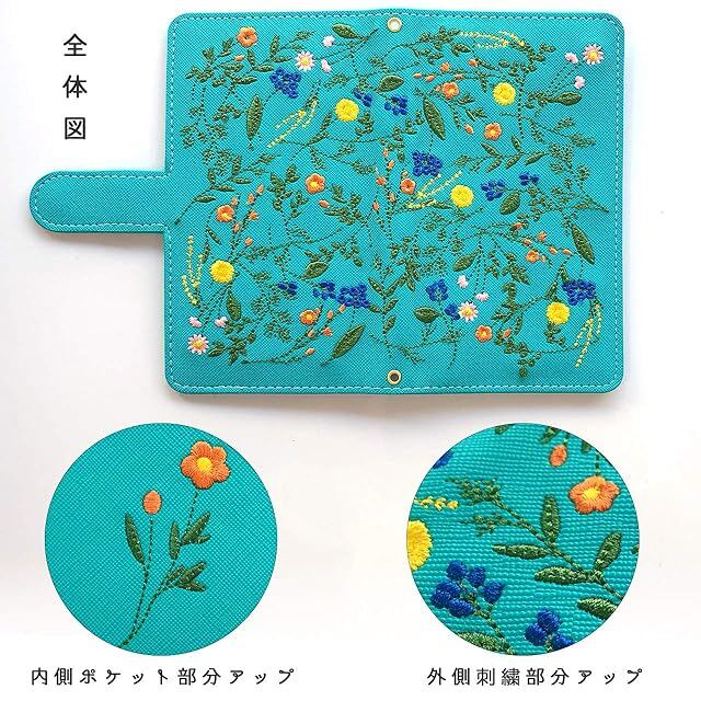 商品名:AQUOS sense 3 SH-02M SHV45 basic SHV48 lite SH-RM12 Android one S7 専用 ケース カバー ボタニカル 花 刺繍 SH-02Mケース SH-02Mカバー SH-02M手帳型ケース SH-02M手帳型カバー スマホ スマホケース スマホカバー 花柄 ターコイズ