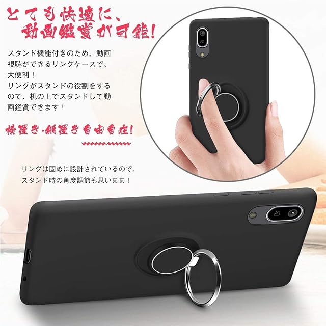 商品名:AQUOS sense3 ケース/AQUOS sense3 basic ケース/AQUOS sense3 lite ケース/Android One S7 ケース リング TPU 耐衝撃 シリコン 薄型 車載ホルダー ストラップホール付き SH-02M / SHV45 / SH-RM12 / SHV48 カバー ブラック