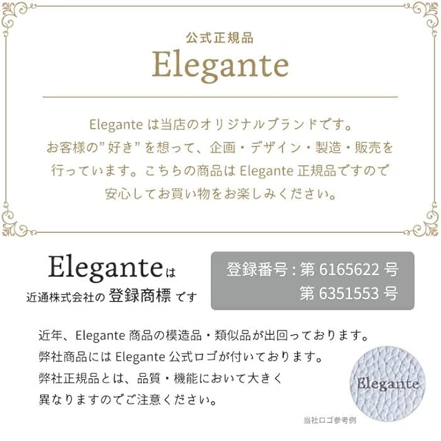Elegante(エレガンテ):『あなたの好きを、あなたの身近に』をコンセプトに、お客様の“あったらいいな”が、“ここにあった!”に変わることを目指して、すべて日本国内の自社で、商品の企画から開発・デザインまでしています。※最近、模倣品が出回っておりますので、ご注意ください。正規品にはすべてEleganteの刻印がございます。(Elegante エレガンテは、近通株式会社の登録商標です)