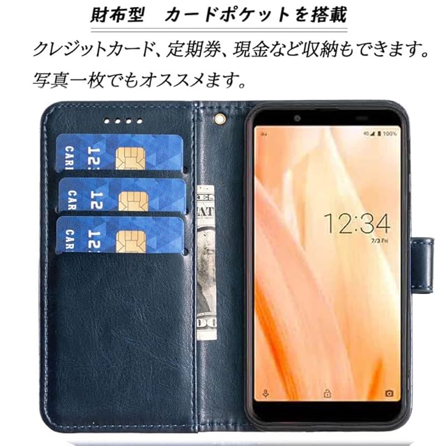 【KSK】SHARP AQUOS sense3 lite SH-RM12 SH-02M SHV45 Android One S7(5.5インチ)対応 手帳型 ケース sense3lite(ネイビー)収納 レザー 携帯カバー 銀行カード現金 スマホケース ネット スタンド 防塵 防水 スマホケース全面保護 耐摩擦手触りが良い耐衝撃 高級合皮上質 手帳型 人気 oneS7 DarkBlue