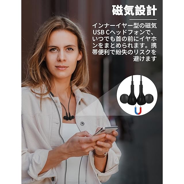 商品名:タイプc イヤホン 有線 マイク付き 磁気設計 カタル型 通話可能 対応 iPhone 17 16 Pro Max 16e 17 Air USB Type-Cイヤフォン 対応iPad Pro A16 Air Mini 6 Pixel 8a 9a 対応Samsung S25 S24S 23 A16 アンドロイドスマホ パソコン HIFI音質 テレワーク web会議 収納ケース付き 可愛い ブラック