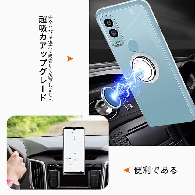 【商品説明】:<br>【対応機種】Android One S10/One S9 に対応するクリアケース<br> <br>【 高い透明度 - 抜群のフィット 】透明度が高く、本体の鮮やかな色をそのまま映し出すことができ、Android One S10のオリジナルのカラーを損ねません。ケースの端はダイヤモンドカットプロセスを施すことでより洗練された美しい外観となっています。<br><br>【リング付き】後ろに付いているフィンガーリングはスタンド機能はもちろん、滑りにくくて持ちやすい、安定的なグリップが特徴です。リングはケースにしっかり固定されていて、縦置き、横置きどんな角度でも固定できます。360度回転可能、180角度調節可能。垂直画面で小説を読むことができます、または、画面全体でビデオを見る。<br><br>【車載ホルダー対応】マグネット対応金属板が付き、マグネット式の車載ホルダーに強く吸着します。車の磁石支持して使用されて、磁力があるの場合にスマホ等をバッチリ固定します。<br><br>【全面保護】フチが高低差を設計し、液晶画面とカメラレンズをキズから保護します。机から滑り落ちる心配は全然ない上に、平らな場所においてもケースに直接触れることがなく、レンズも二度と守れます。長く使用したら、万が一汚れても濡れた毛布でふき取るだけで綺麗になります。