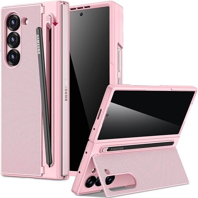 Miimall 対応 Galaxy Z Fold 6 カバー S ペン収納 ヒンジ保護 女性 Z Fold 6 バンパー スタンド 耐衝撃 画面保護 かわいい 汚れ防止 落下防止 全面保護 滑り止め 折り畳み スマホケース ギャラクシー Z フォールド6 携帯ケース (ピンク)