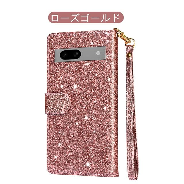 GooglePixel7aカバー手帳型PUレザースタンド機能カード収納ストラップ付きグリッター可愛いキラキラお洒落デコPUレザーケースグーグルピクセル7aアンドロイド
