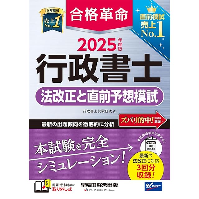 商品名:2025年度版 合格革命 行政書士 法改正と直前予想模試【最新の法改正に対応/3回分収録】(早稲田経営出版)