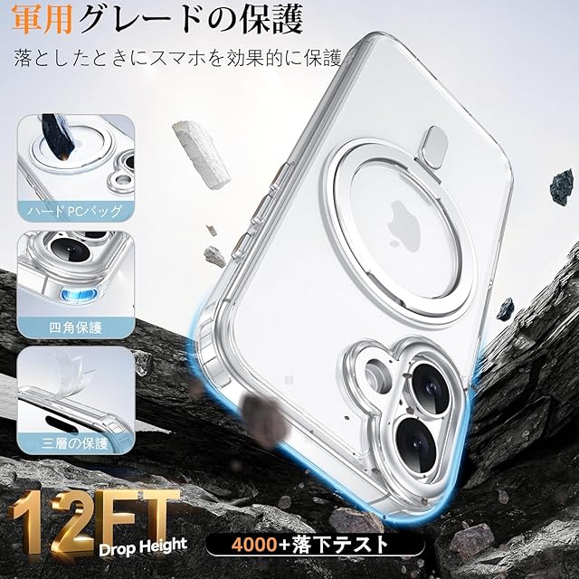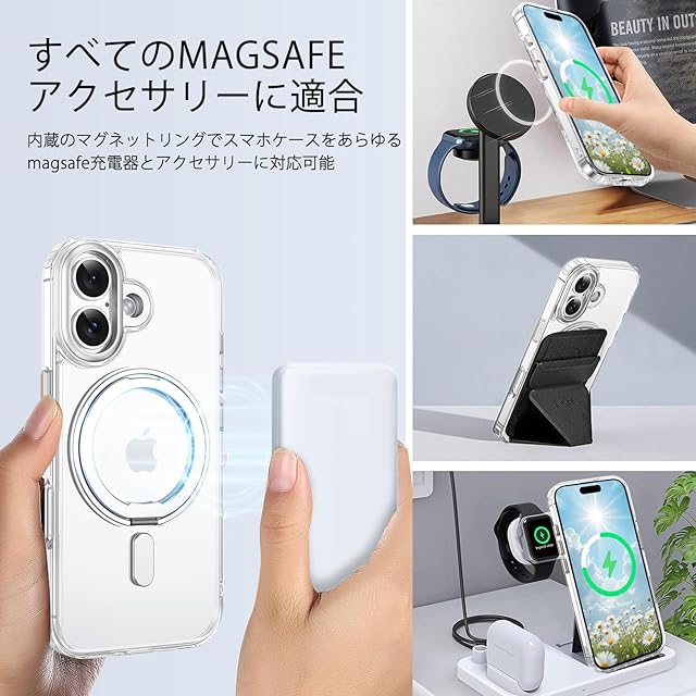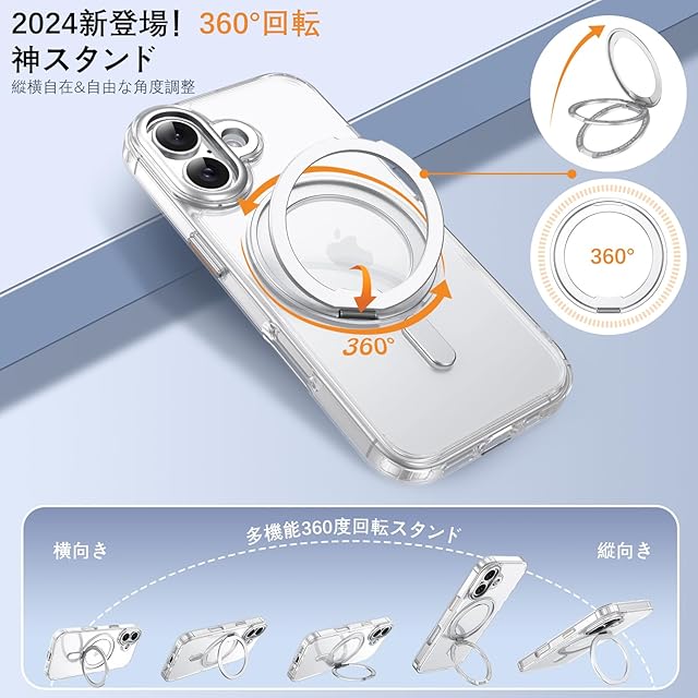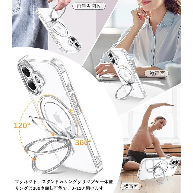 商品名:Telaso iPhone 17 ケース magsafe対応 360度回転 スタンド 縦横両対応 ワイヤレス充電 いphone17ケース 6.3インチ 透明 リング 指紋防止 黄変防止 マグセーフ対応 ストラップホール付き 傷つけ防止 防滑 落下防止 クリア