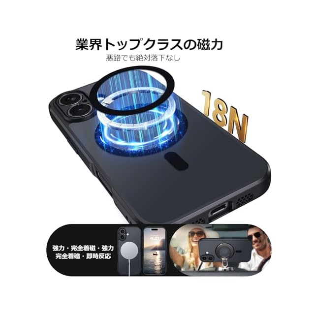 【MagSafe完全対応】内蔵強力マグネットが全てのMagSafeアクセサリーとシームレス接続。ワイヤレス充電・カーチャージャー・グリップスタンドなど、多彩なアイテムが装着可能です。