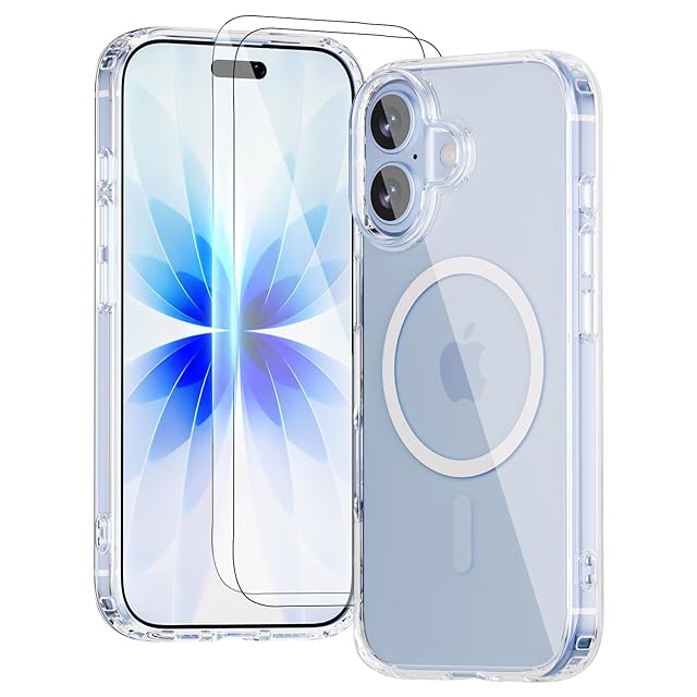 商品名:Yunjews iPhone 17 用 ケース クリア MagSafe対応 強化ガラススクリーンプロテクター2枚 黄ばみ防止 ミリタリーグレード耐衝撃 スリム軽量保護電話カバー 6.3インチ 透明