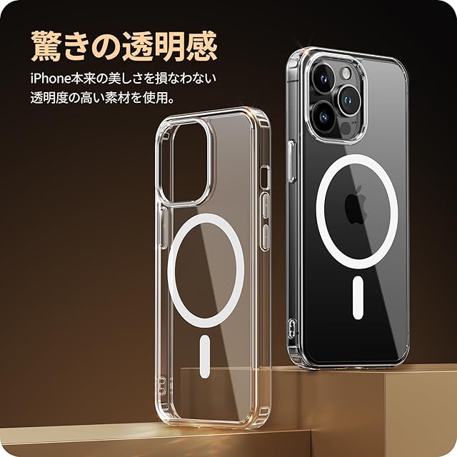 商品名:NIMASO iPhone14 pro 用 ケース MagSafe対応 クリア 軽量 PC 背面 黄変防止 耐衝撃 傷つけ防止 ケース マグネット搭載 マグセーフ対応 バンパー ワイヤレス充電対応 ストラップホール付き 携帯カバー アイフォン14プロ対応 (6.1インチ)氷星シリーズ クリア NSC24C1144