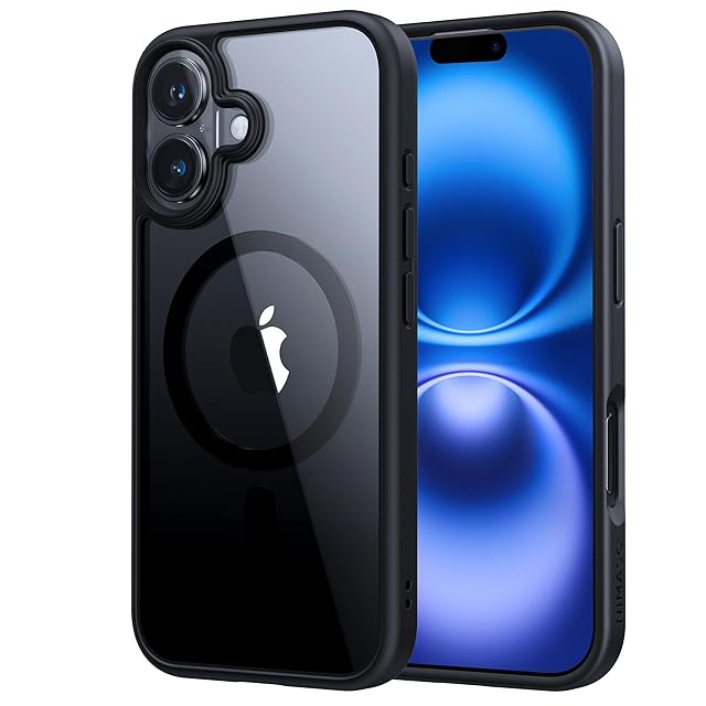 NIMASO iPhone 16 用 ケース MagSafe対応 黄変防止 マグネット搭載 マグセーフ対応 耐衝撃 米軍MIL規格 SGS認証 PC背面 いPhone 16 対応 傷つけ防止 薄型 ワイヤレス充電対応 ストラップホール付き アイフォン 16 対応(6.1インチ)スマホケース(氷星シリーズ)ブラック NSC24G1489
