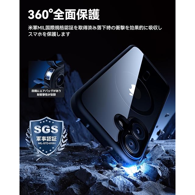 商品名:NIMASO iPhone 16 用 ケース MagSafe対応 黄変防止 マグネット搭載 マグセーフ対応 耐衝撃 米軍MIL規格 SGS認証 PC背面 いPhone 16 対応 傷つけ防止 薄型 ワイヤレス充電対応 ストラップホール付き アイフォン 16 対応(6.1インチ)スマホケース(氷星シリーズ)ブラック NSC24G1489