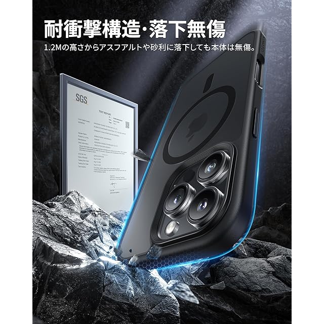 【米軍規格SGS認証・超強耐衝撃性】世界で有名な米国防総省が規定する米軍採用品規格「MIL-STD-810H」認証を取得済みです(認証番号:GZMR220802602301)。カバーの縁はスマホの液晶画面より1.4mm高く、カメラレンズより0.6mm高い、併用の保護ガラスフィルムで平置きしても画面は接触しない、細部までの保護も配慮され、より一層な安心感を与えられます。コンクリートの地面に厚さ5mmの合板を敷き、高さ1.2mから合計26回、違う角度から落下させる実験をしましたが、本体に傷はつきませんでした。高い耐衝撃性を誇り、スマホを全方位からしっかりと守ります。
