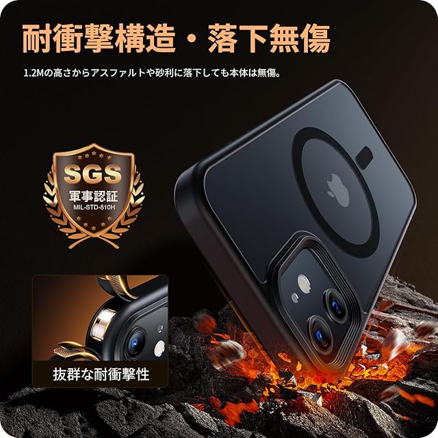 NIMASO ケース MagSafe 対応 iPhone12pro/12 ケース マグネット搭載 マグセーフ対応 カバー 滑り止め マット仕上げ 全面保護 耐衝撃 米軍MIL規格取得 ワイヤレス充電 ストラップホール付き アイフォン12プロ/12対応(6.1インチ) スマホケース ブラック (黒羽シリーズ)NSC24C1132