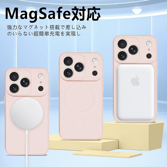 MagSafe対応 : MiaoKeDa 対応iPhone17Pro マグセーフケース は内部のマグネットを搭載しています。あいふぉん17pro スマホケース。充電する時は、MagSafe対応充電器を使うか、充電器の上に置くだけ