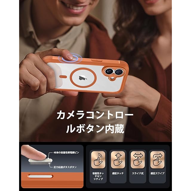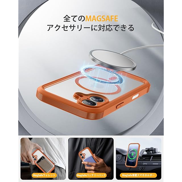 商品名:Miracase iPhone17 ケース MagSafe対応 スマホケース いPhone17 用 カバー 9H 強化ガラス 360°保護 全身バンパー保護ケース 6.3インチ フルカバー ワイヤレス充電対応 マグセーフ対応 マグネット搭載 オレンジ