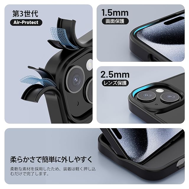商品名:iPhone15 ケース マットクリア TPU+PC 半透明 耐衝撃 滑り止め iPhone 15 ケース 指紋防止 米軍MIL規格 黄変防止 ワイヤレス充電対応 スマホケース iPhone 15 [WHTMM]