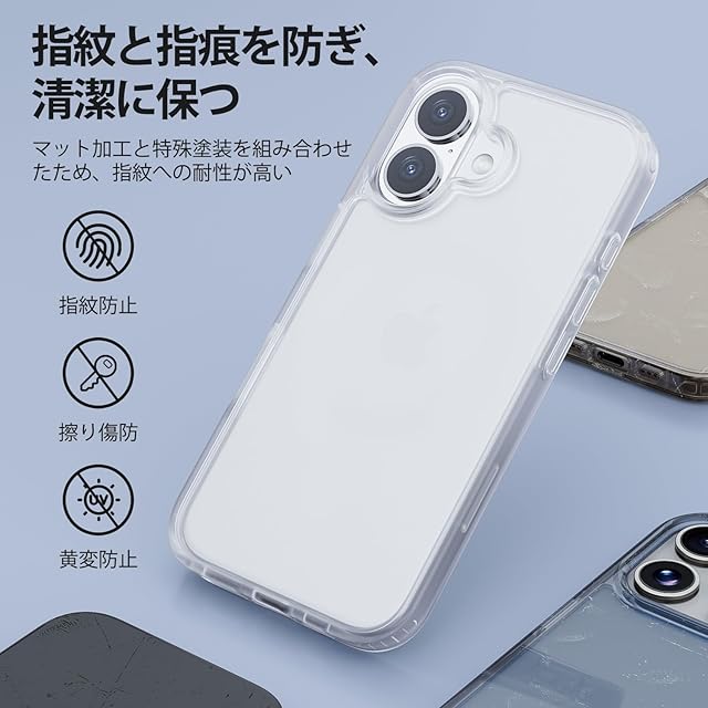 商品名:iPhone 16 Plus ケース マットクリア TPU+PC 半透明 耐衝撃 滑り止め 指紋防止 米軍MIL規格 黄変防止 ワイヤレス充電対応 スマホケース iPhone 16 Plus [WHTMM]