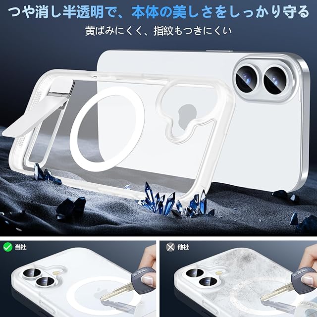 商品名:Fin2feel iPhone 17 ケース【MagSafe高速充電対応】ガラスフィルム &スタンド付き 半透明 米軍 MIL 耐衝撃認定 耐衝撃・指紋防止・黄ばみ防止 TPU+PC 素材 6.3 インチ専用(クリア)