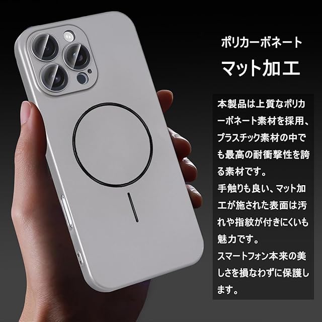 【超薄型・上質なPC素材】、【一体型カメラレンズ保護】、【MagSafe対応+ストラップホール】、【美しいデザイン】