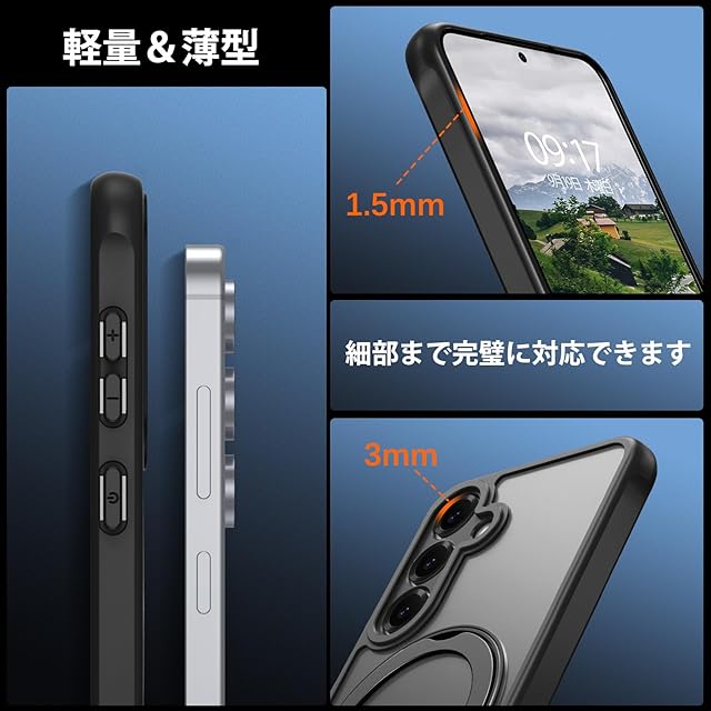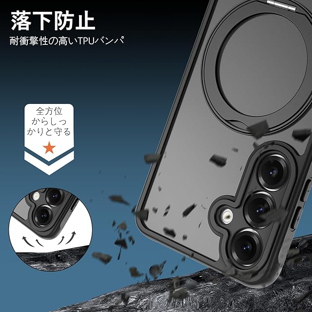 商品名:Telaso Galaxy s25 ケース MagSafe対応 マグネット搭載 スタンド機能 360°回転可能 ギャラクシーs25 ケース マット感 耐衝撃 スタンド s25 カバー 指紋防止 一体型 薄型 TPU 車載ホルダー対応 ワイヤレス充電 全面保護 ブラック