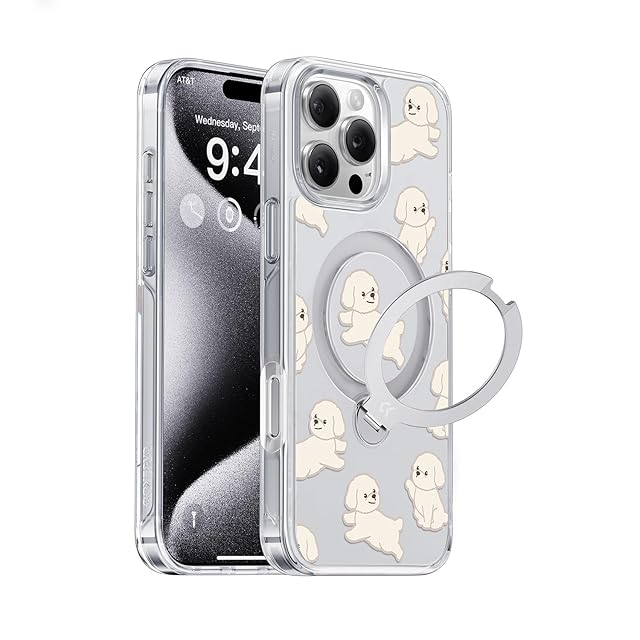 商品名:【最新トレンド・360°回転スタンド】CASEKOO iPhone 15 Pro Max 用ケース クリア 比熊犬 ふわふわ 米軍MIL規格 フィット感 MagSafe対応 最大15W急速充電対応 横縦両立 角度自在 超強磁力 耐衝撃 高耐久性 ラップホール付き 透明 黄変防止 いphone15pro max ケース 6.7インチ「XLine MagicStand Pro」(クリア)
