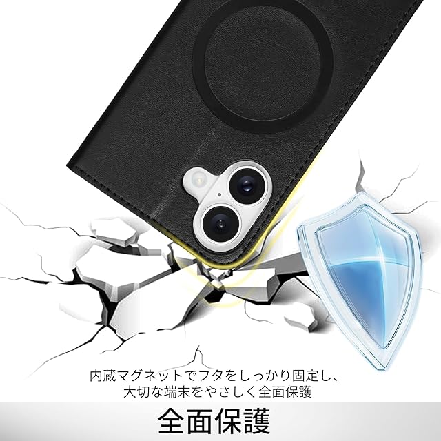商品名:Shlybaay iPhone 17 用 ケース 手帳型 MagSafe対応 カード収納 アイフォン 17 用 カバー ワイヤレス マグネット付き いphone17 手帳型ケース マグセーフ スタンド機能 RFID ブロッキング 6.3インチ W1M ブラック