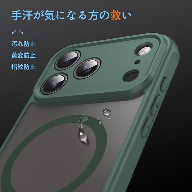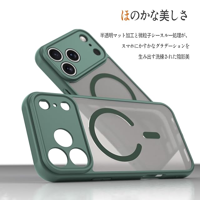 商品名:Panda Baby iPhone 17 Pro Max 用 ケース MagSafe対応 半透明 マット質感 指紋防止 薄型 耐衝撃バンパー マグネット搭載 レンズ全面保護 (グリーン)
