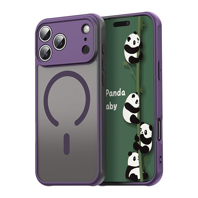 Panda Baby iPhone 17 Pro Max 用 ケース MagSafe対応 半透明 マット質感 指紋防止 薄型 耐衝撃バンパー マグネット搭載 レンズ全面保護 (パープル)